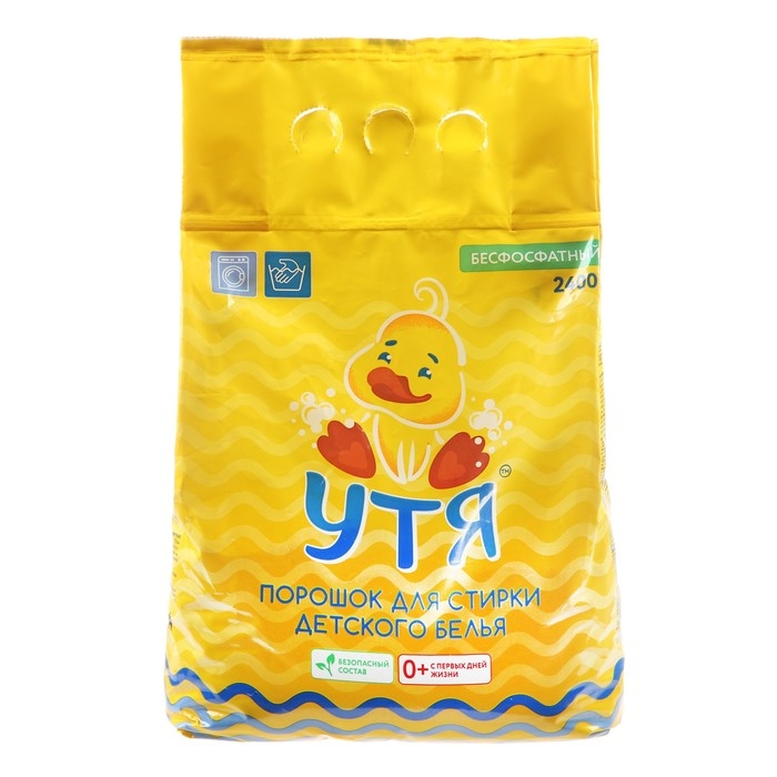 Стиральный детский порошок «Утя» разработан на основе натурального мыла, подходит для стирки детского белья с первых дней жизни. Предназначен для замачивания, ручной стирки и стирки в автоматических стиральных машинах детского белья из хлопчатобумажных, льняных, синтетических тканей и тканей из смешанных волокон.