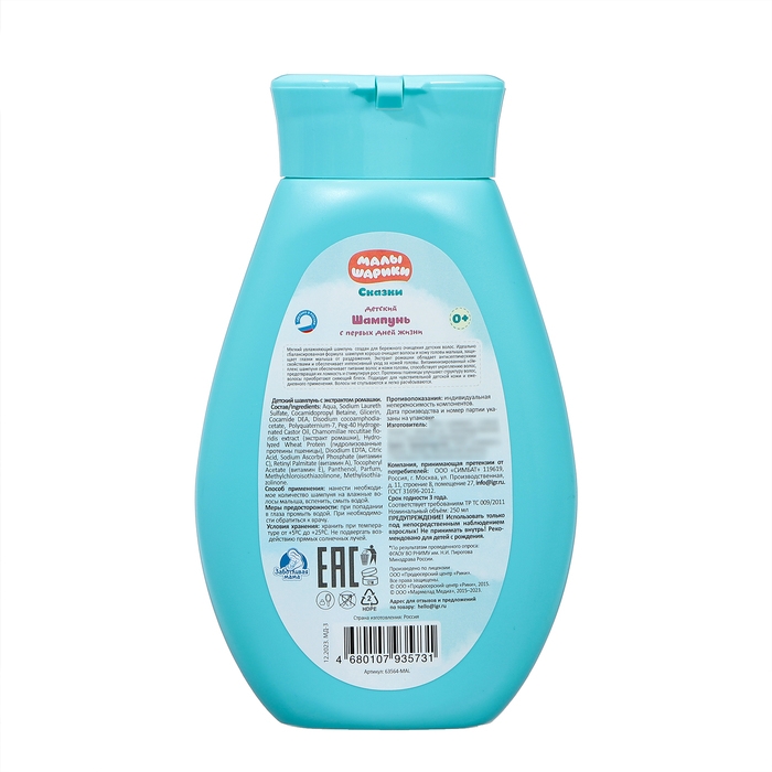 - Шампунь эффективно очищает волосы и кожу головы, не пересушивая и не раздражая чувствительную кожу малыша.