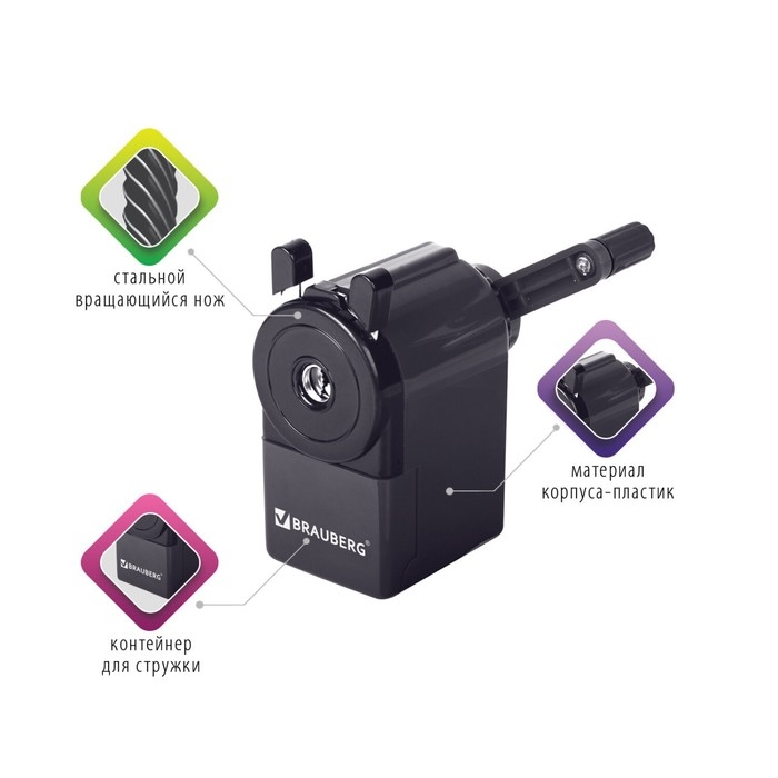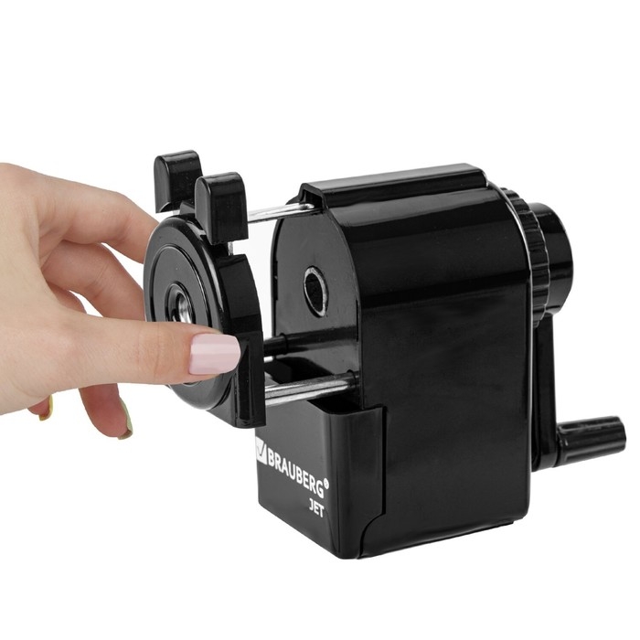 Точилка механическая BRAUBERG "JET", металлический механизм, корпус черный 229566