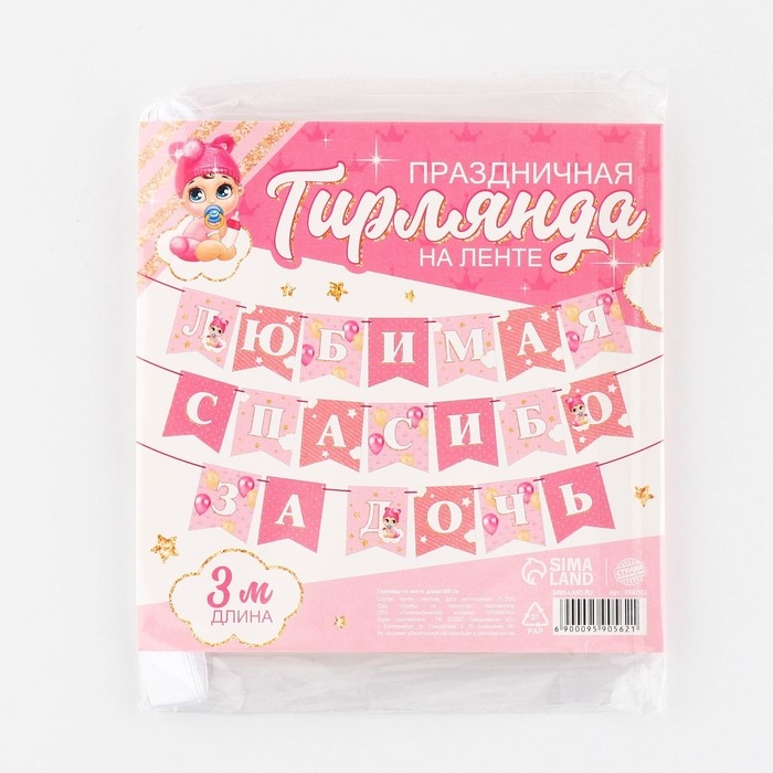 Гирлянда на ленте «Любимая, спасибо за дочь», 300 см.