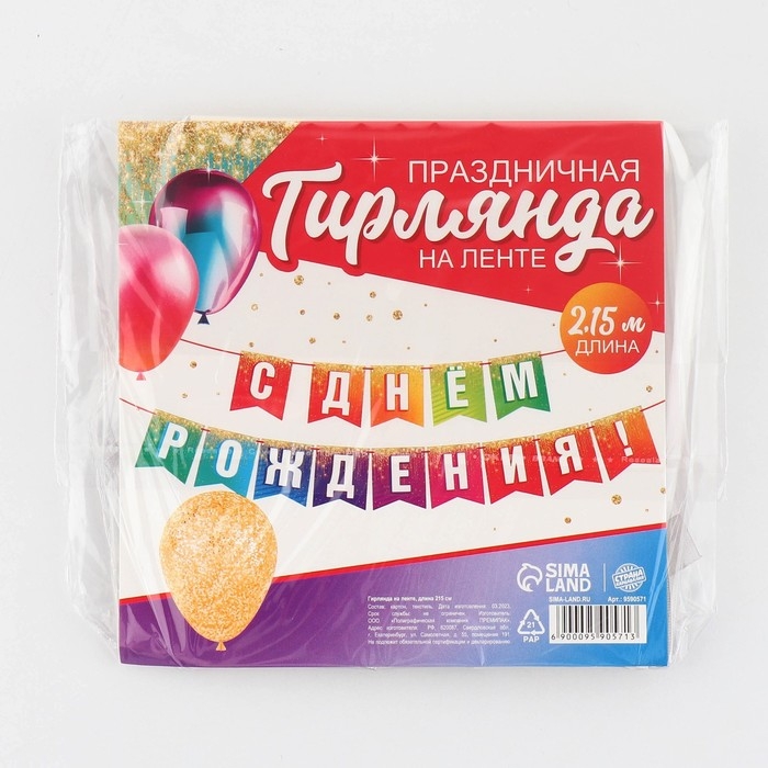 Гирлянда на ленте «С Днём рождения», 215 см.