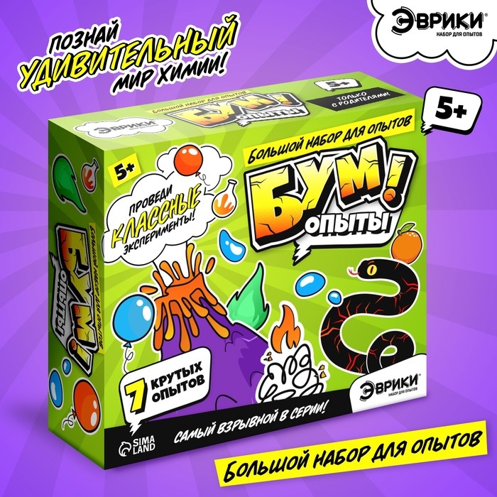 С набором для опытов «Эврики» ребёнок почувствует себя настоящим химиком-изобретателем и проведёт 7 увлекательных «взрывных» экспериментов!