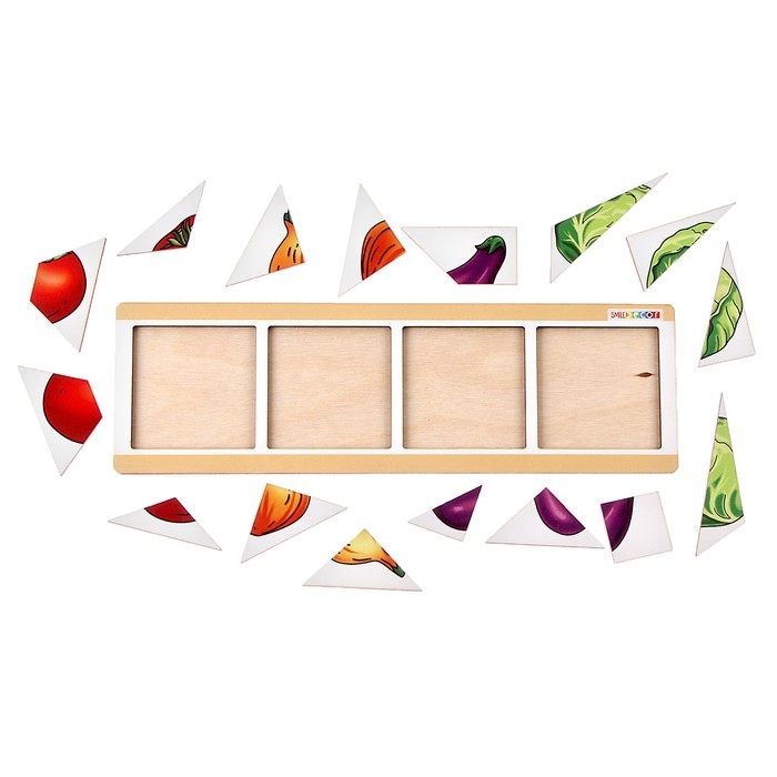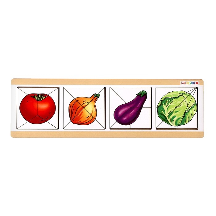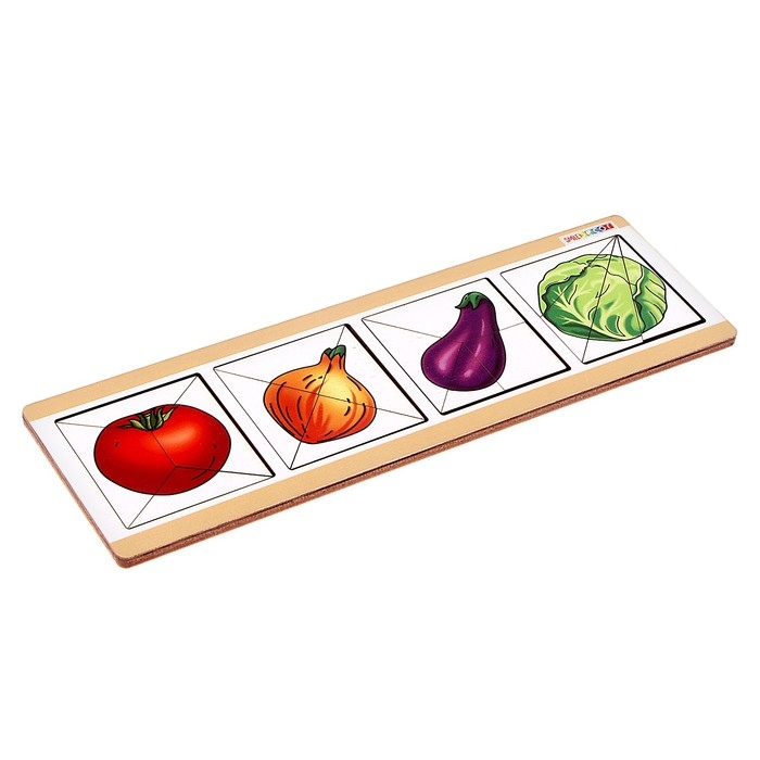 В наборе 4 красочные картинки с изображениями овощей, разрезанные на несколько частей. Вы можете придумать несколько разных вариантов игр.