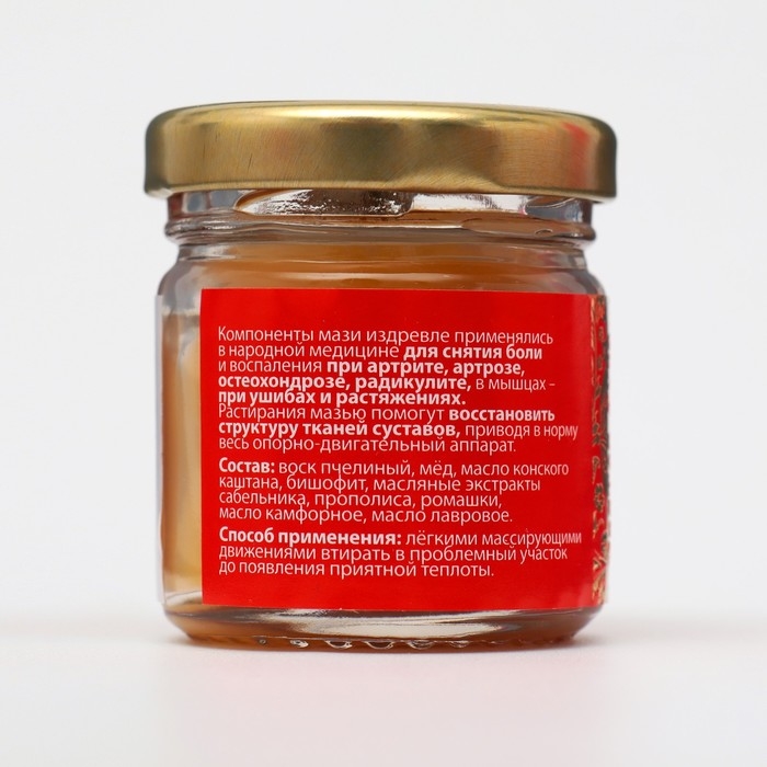 Компоненты мази издревле применялись в народной медицине для снятия боли и воспаления при артрите, артрозе, остеохондрозе, радикулите, в мышцах – при ушибах и растяжениях. Растирания мазью помогут восстановить структуру тканей суставов, приводя в норму весь опорно-двигательный аппарат.