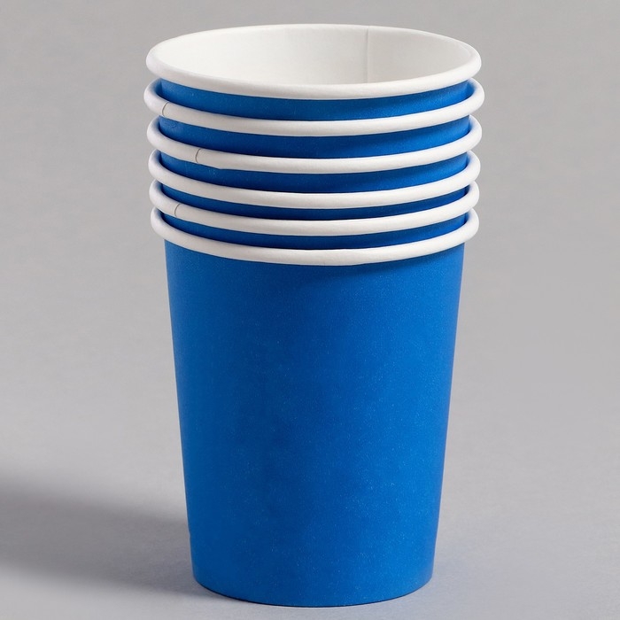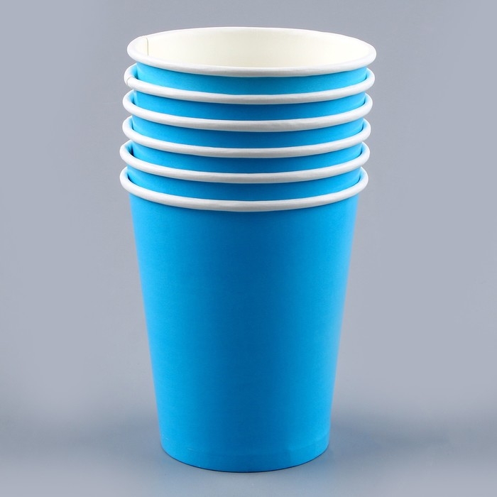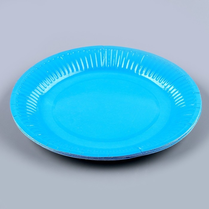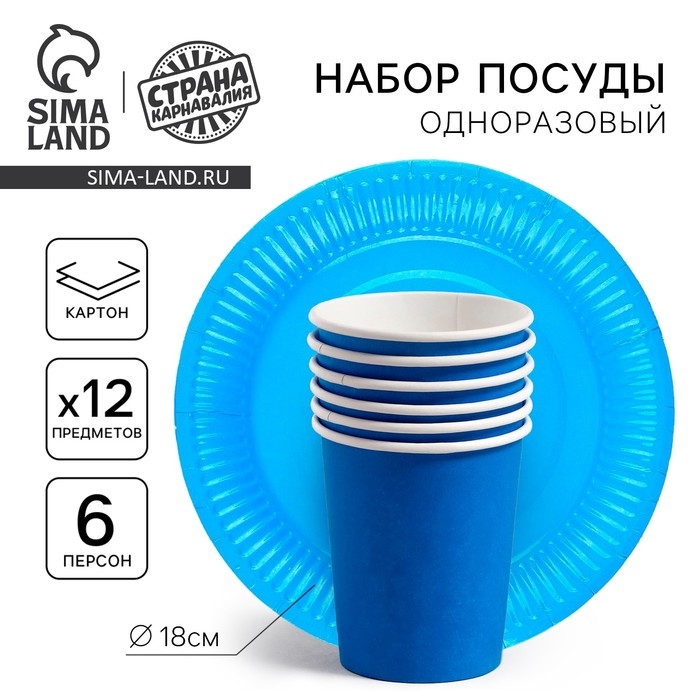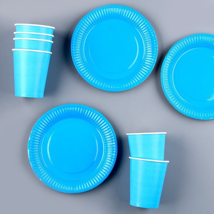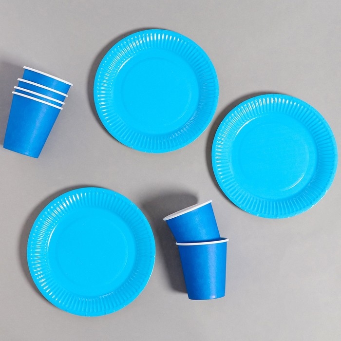 Набор бумажной посуды одноразовый: 6 тарелок, 6 стаканов, цвет голубой
