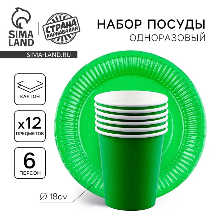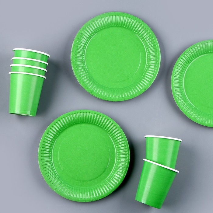 Набор бумажной посуды: 6 тарелок, 6 стаканов, цвет зелёный