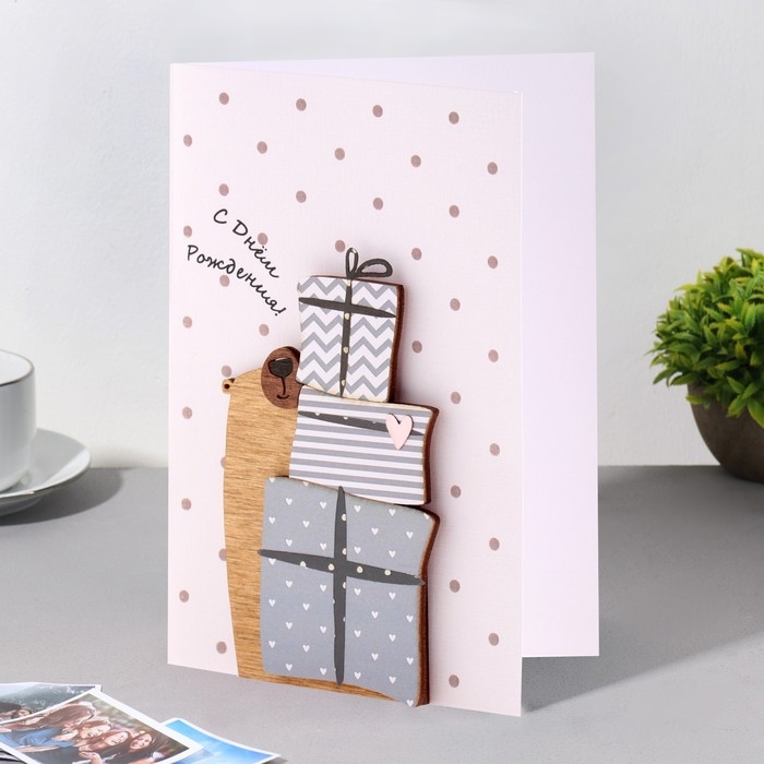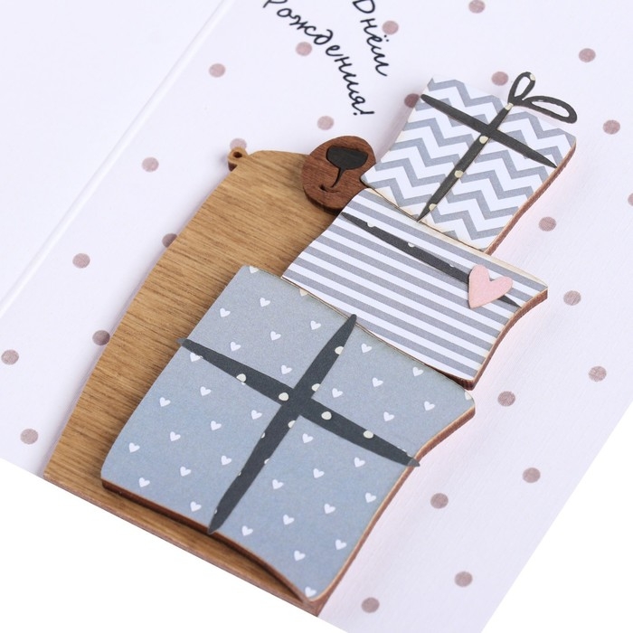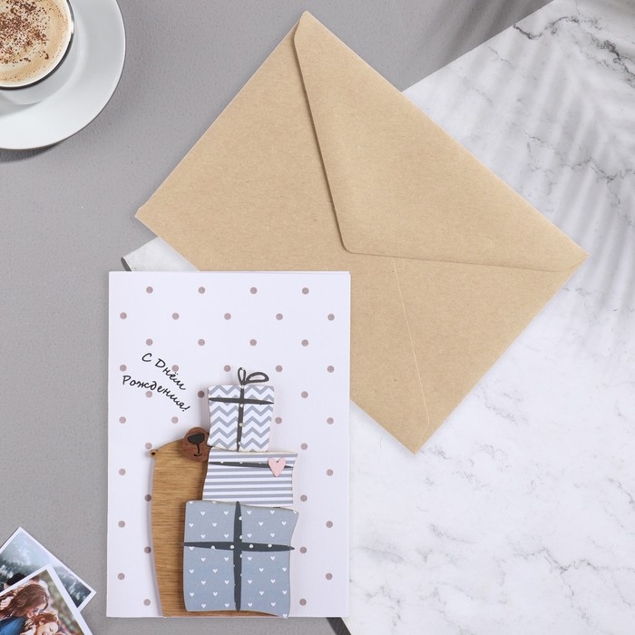 Открытка с деревянным элементом "С Днем Рождения!" ручная работа, подарки, 14,7х10,5 см