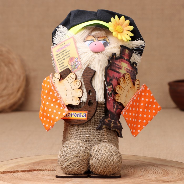 Оберег-домовой "Кузя в кепке, с самоваром и подковой", 26х15х12 см МИКС