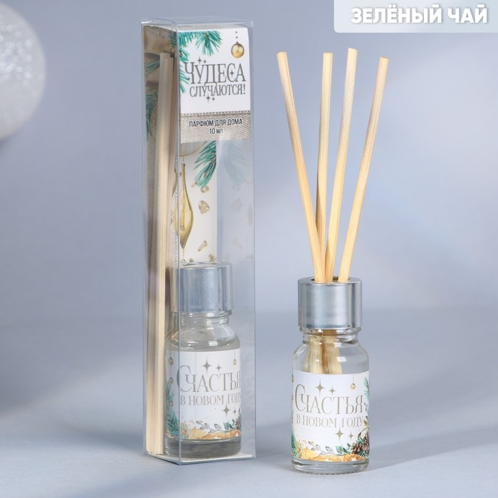 Новый год! Диффузор ароматический палочки «Новогодняя коллекция: Счастья в новом году», зеленый чай, 10 мл - для дома, кабинета и офиса. Ароматные палочки и диффузоры являются современным модным элементом интерьера. Ароматический диффузор создаёт комфорт и притягательную ауру в помещении.