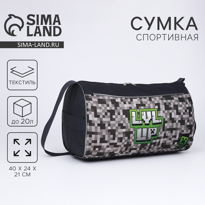 Сумка детская спортивная для мальчика «Пиксели», 40х21х24 см, цвет серый