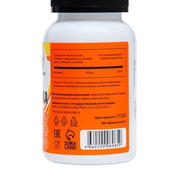 Аскорбинка с глюкозой - плюс, 180 таблеток по 500 мг
