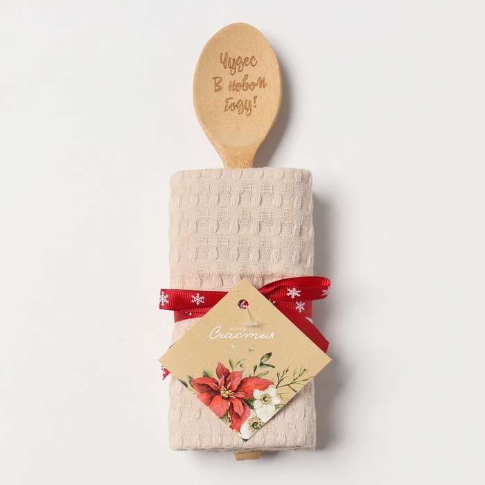 Набор подарочный Доляна "Чудес в новом году": беж.полотенце 35х60см, хл 100%, ваф 220г/м2
