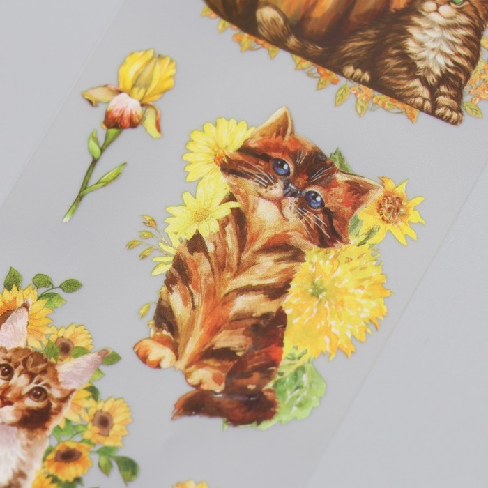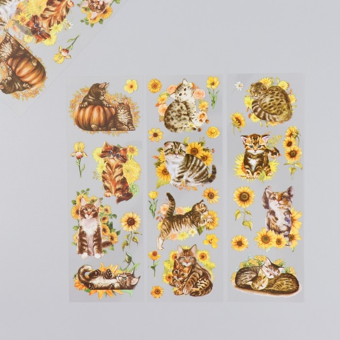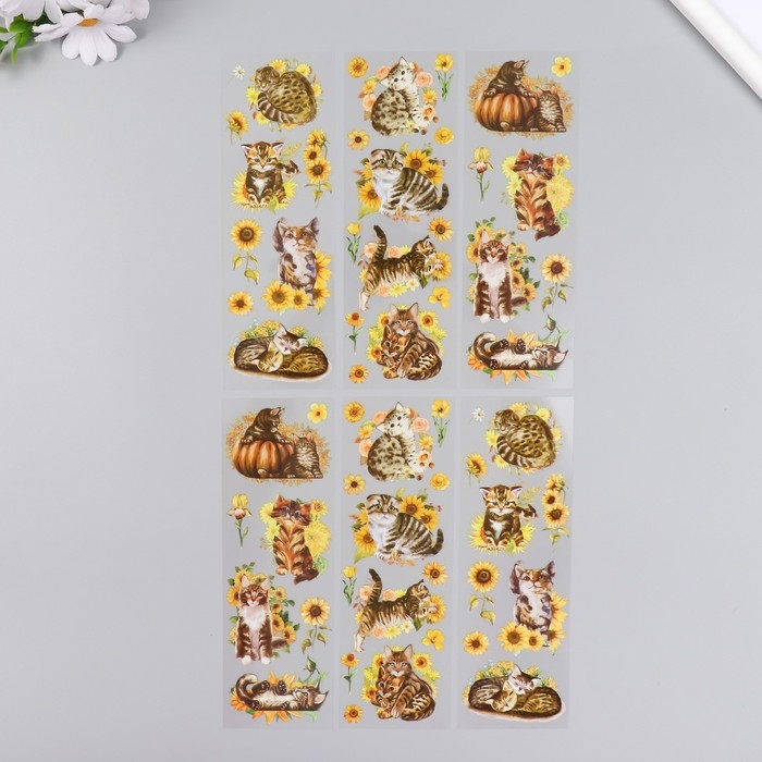 Наклейки для творчества "Полосатые котики и жёлтые цветы" набор 6 листов 18х6 см