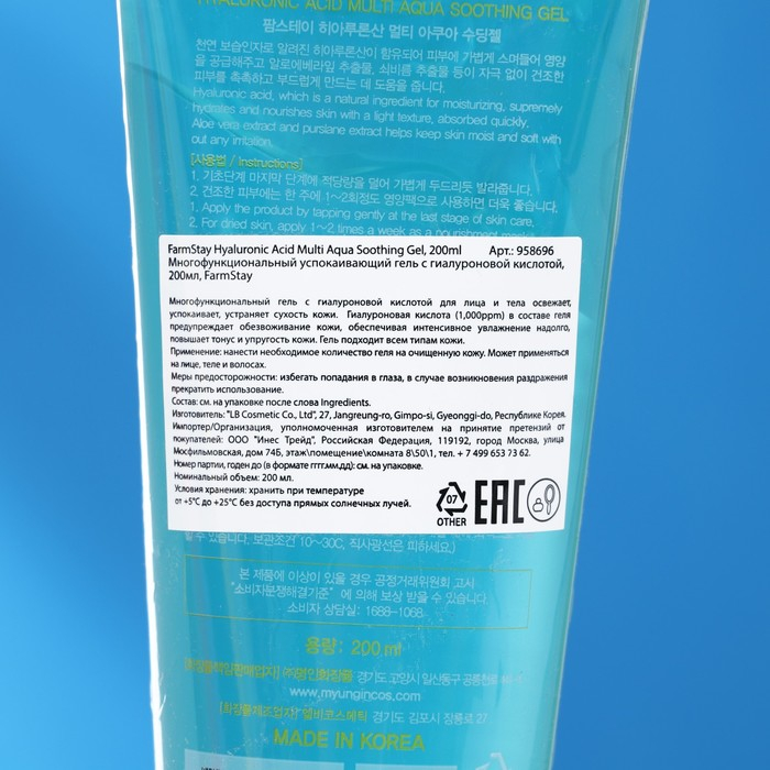 Гель для лица FarmStay, успокаивающий, с гиалуроновой кислотой, 200 мл