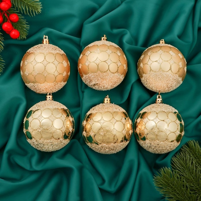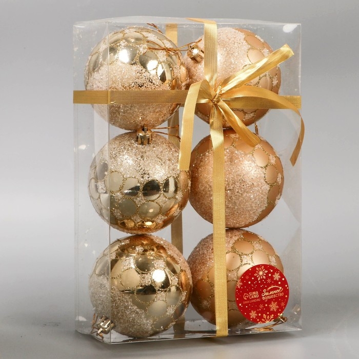 Набор шаров пластик d-8 см, 6 шт "Сюрприз" золото