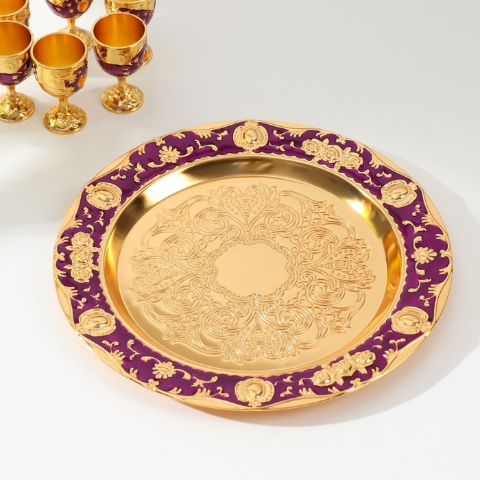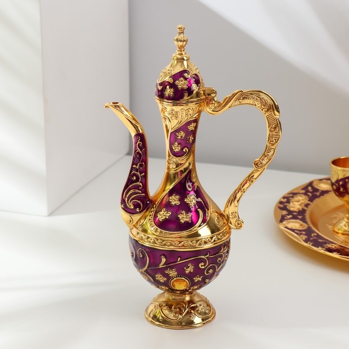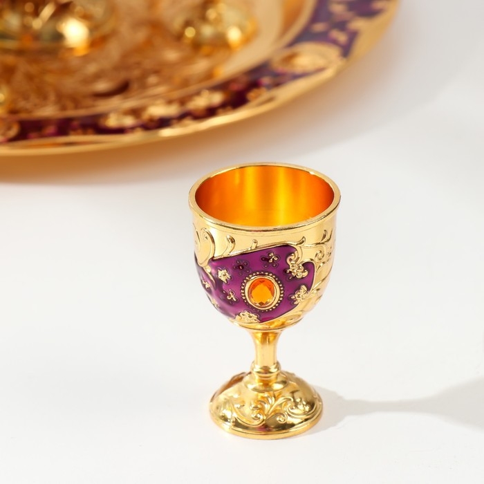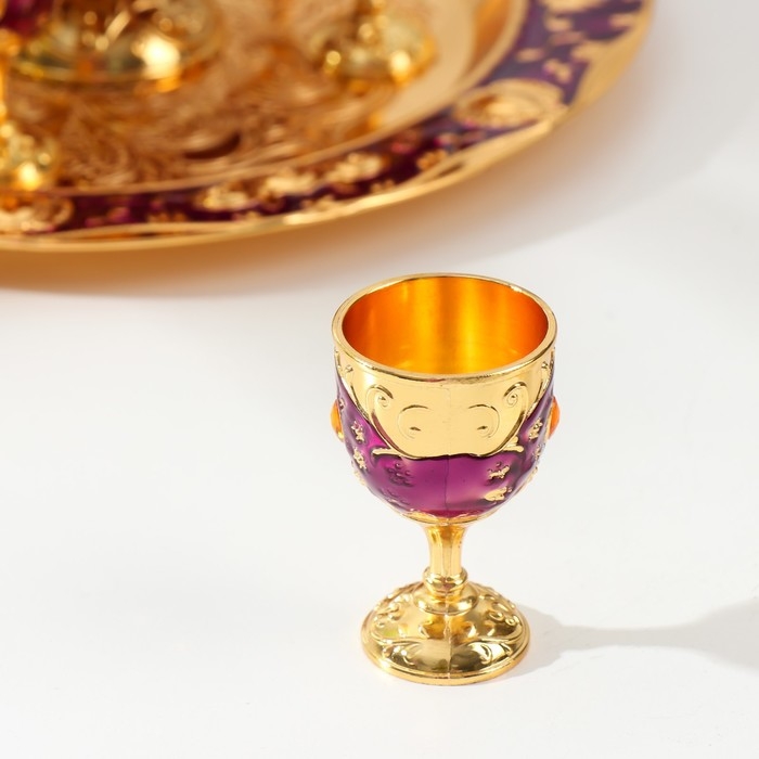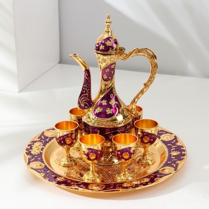 Набор винный кувшин, 6 бокалов и поднос "Стамбул. Цветы" фиолетовый с золотом