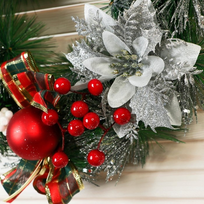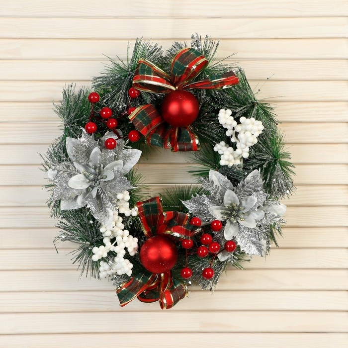 Венок новогодний d- 26 см "Уютная сказка" цветы бантики в клетку