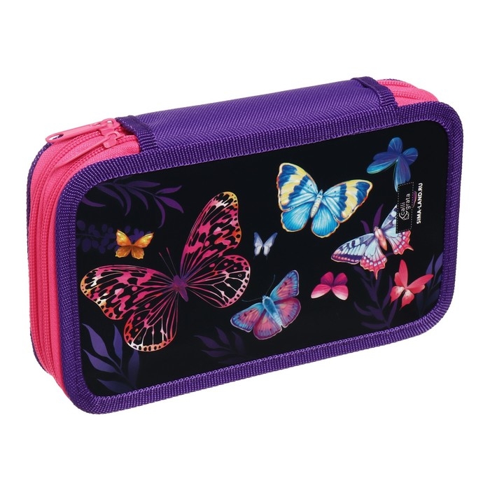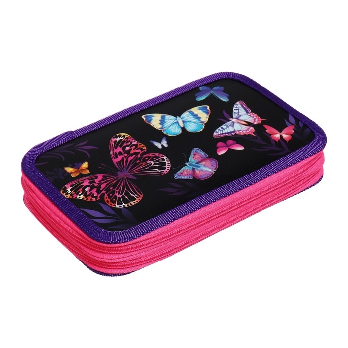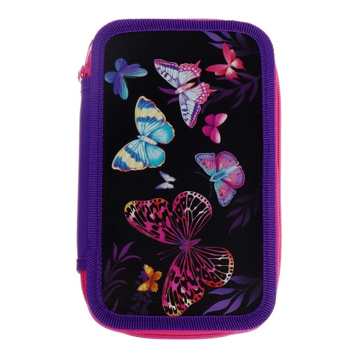Пенал 2 секции, 125 х 205 х 40 мм, Calligrata 30П26/2 "Бабочки", ламинированный картон