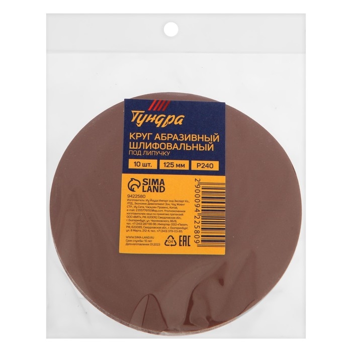 Круг абразивный шлифовальный под "липучку" ТУНДРА, 125 мм, Р240, 10 шт.