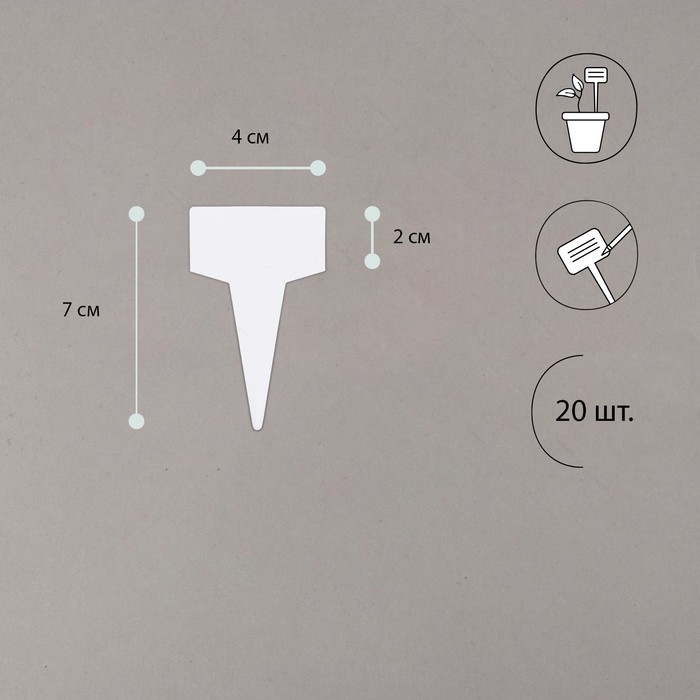 Таблички садовые для маркировки, 15 см, с карандашом, набор 20 шт., пластик, белые