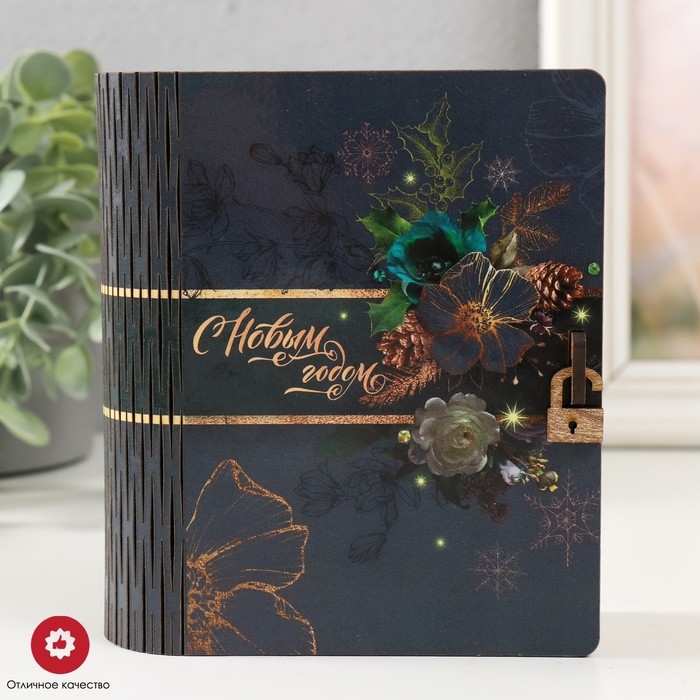 Новогодняя шкатулка-книга "Цветочное настроение" 14х12х5 см
