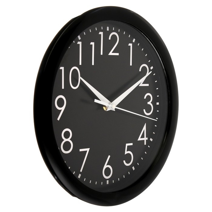 Часы настенные, d-28 см, интерьерные, Классика, "Цифры на чёрном фоне", бесшумные