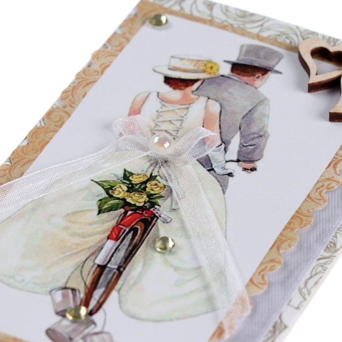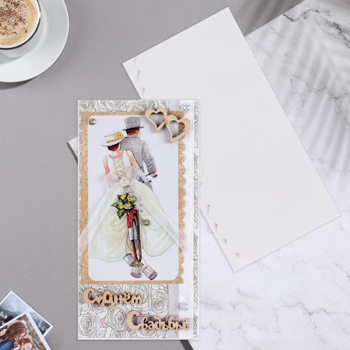 Конверт для денег "С Днём Свадьбы!" ручная работа, пара, 8х16 см