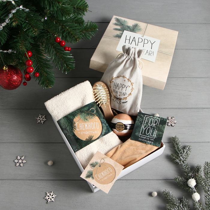 Набор подарочный Happy new year полотенце и аксессуары(4 предмета)