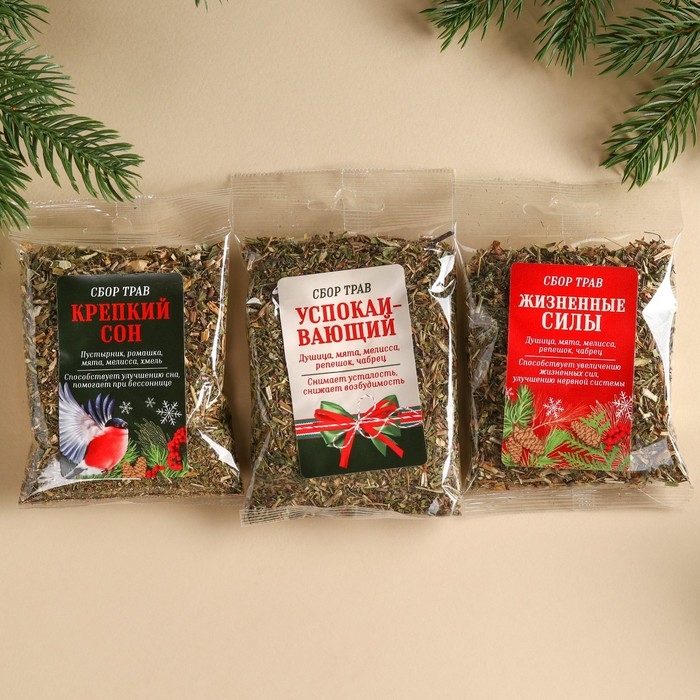 Подарочный набор «Новый год:Здоровья и благополучия»: сбор трав 3 шт. х 20 г., варенье из сосновых шишек 100 мл.