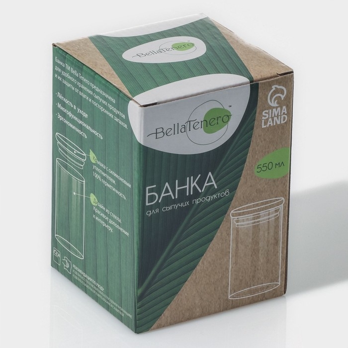 Банка для сыпучих продуктов BellaTenero «Эко» изготовлена из стекла. Крышка с силиконовым уплотнителем защитит продукты от влаги и посторонних запахов.