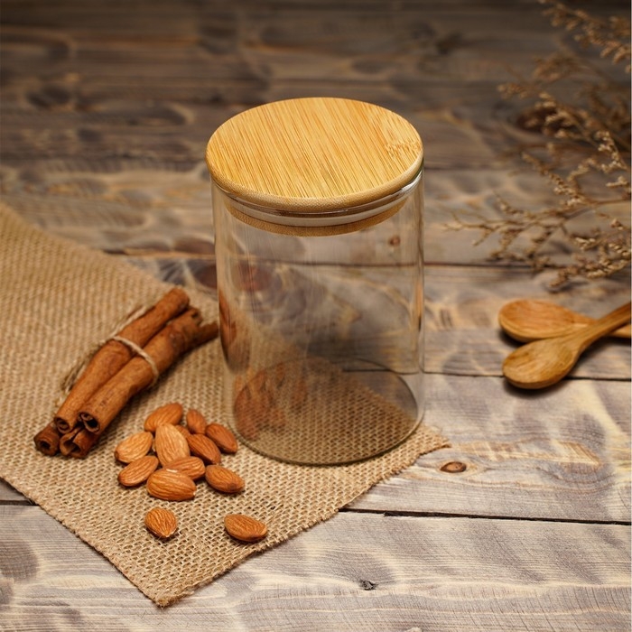 Банка стеклянная для хранения сыпучих продуктов BellaTenero «Эко», 550 мл, 8,5×12,5 см, с бамбуковой крышкой