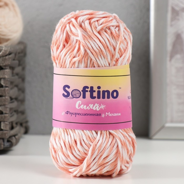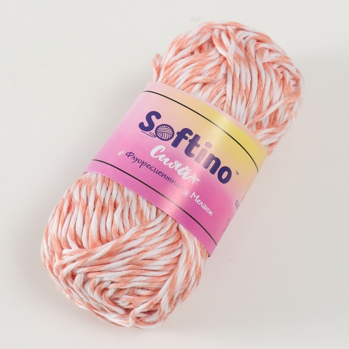 Пряжа светящаяся 100% лавсан "Сияй" меланж 50 гр 50 м бело-оранжевая