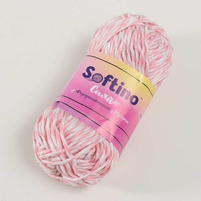 Пряжа светящаяся 100% лавсан "Сияй" меланж 50 гр 50 м бело-розовая