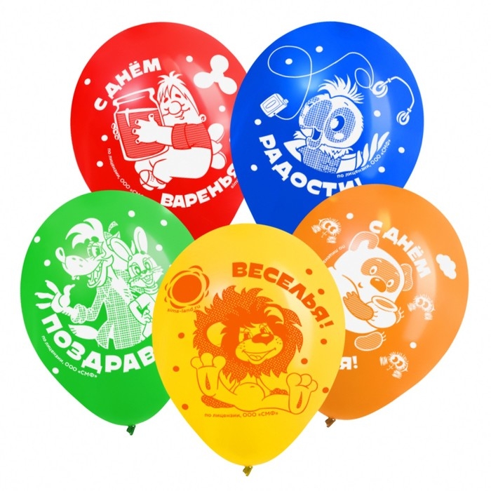 Шар воздушный "С Днем рождения!", 12 дюйм, латексный, 5 штук, Союзмультфильм