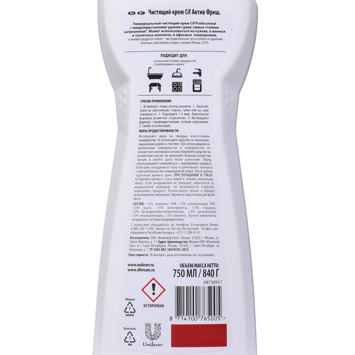 Чистящее средство крем Cif Professional Актив Фреш, 750 мл
