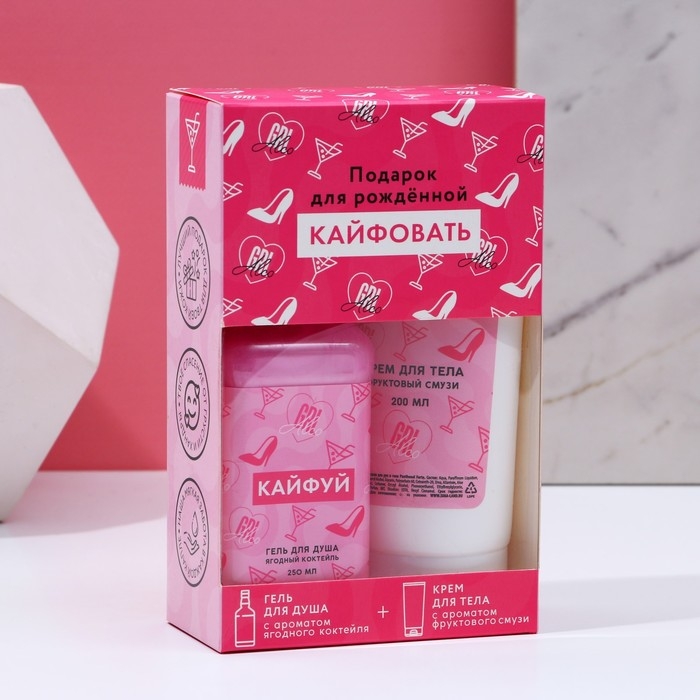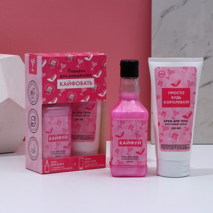 Подарочный набор косметики «Для рожденной кайфовать», гель для душа во флаконе виски 250 мл и крем для тела 200 мл, Новый Год