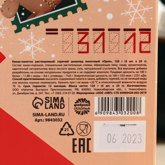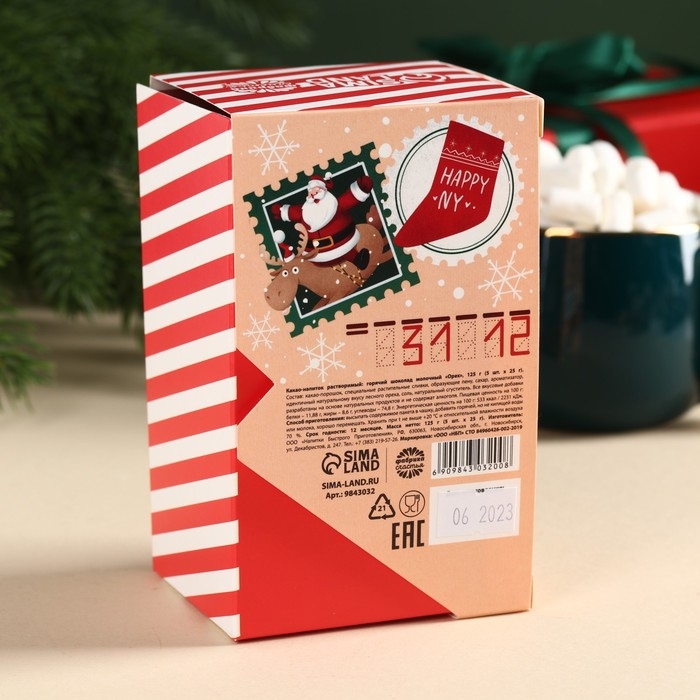 Горячий шоколад в коробке «Тёплых праздников», 125 г (5 шт. х 25 г).