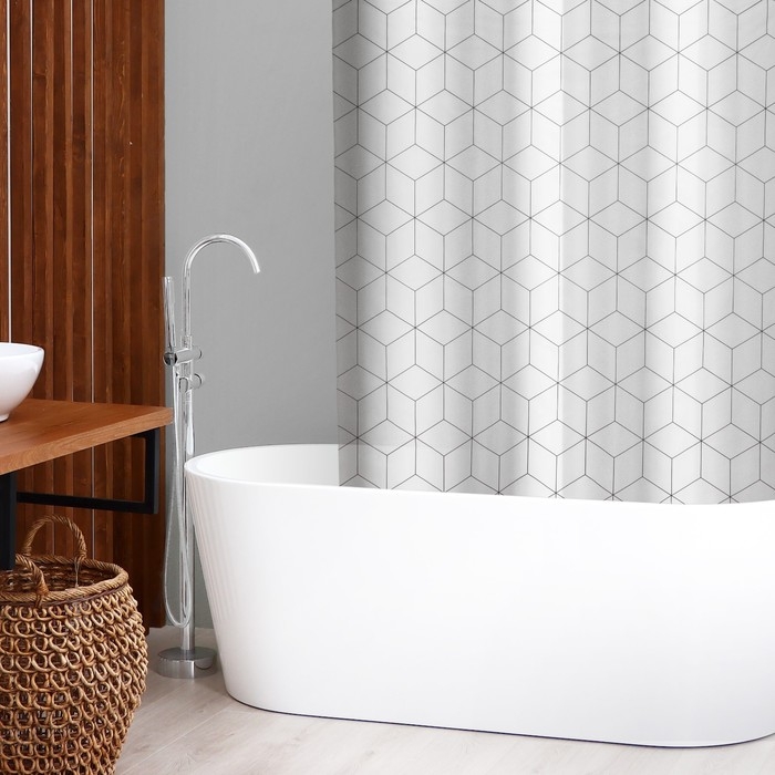 Водоотталкивающая тканевая штора - универсальный аксессуар для ванной комнаты, выполненная из плотного полиэстера с водоотталкивающей пропиткой.