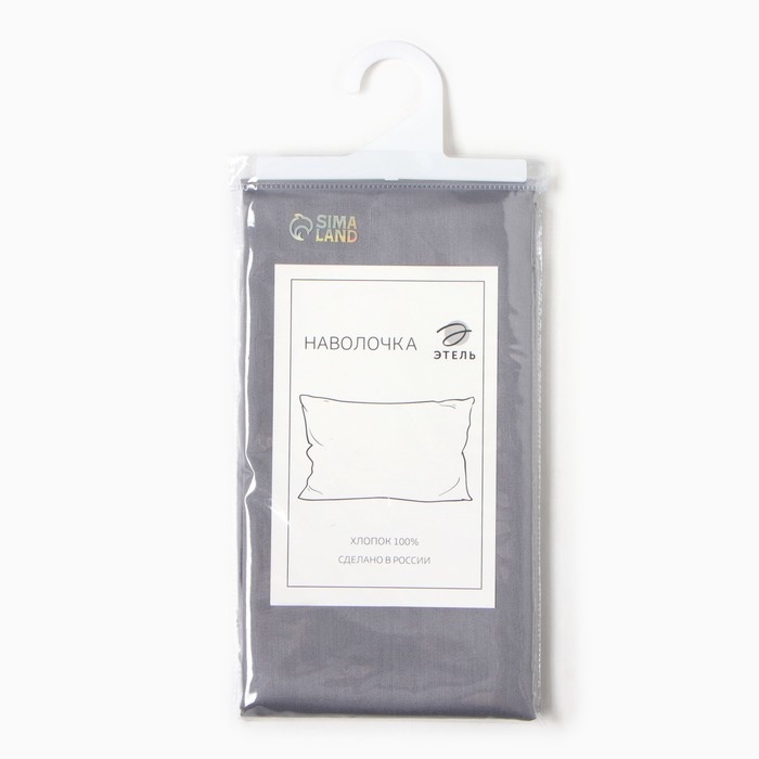 Наволочка Этель 50х70 см, цвет серый, мако-сатин, 114г/м2, 100% хлопок