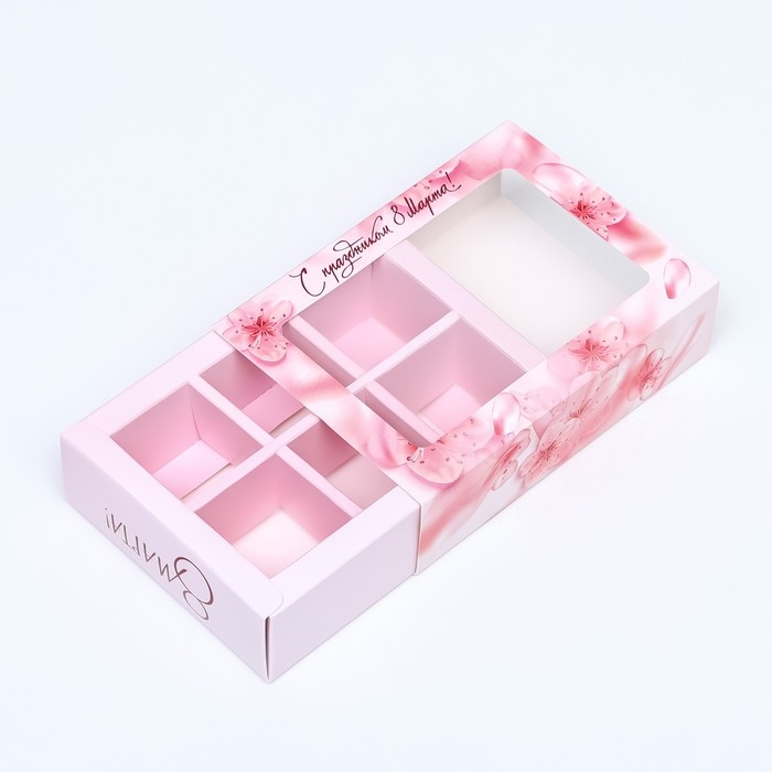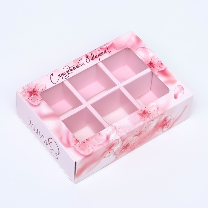 Коробка для конфет 6 шт, " 8 марта" 13,7 х 9,8 х 3,8. Кондитерская упаковка