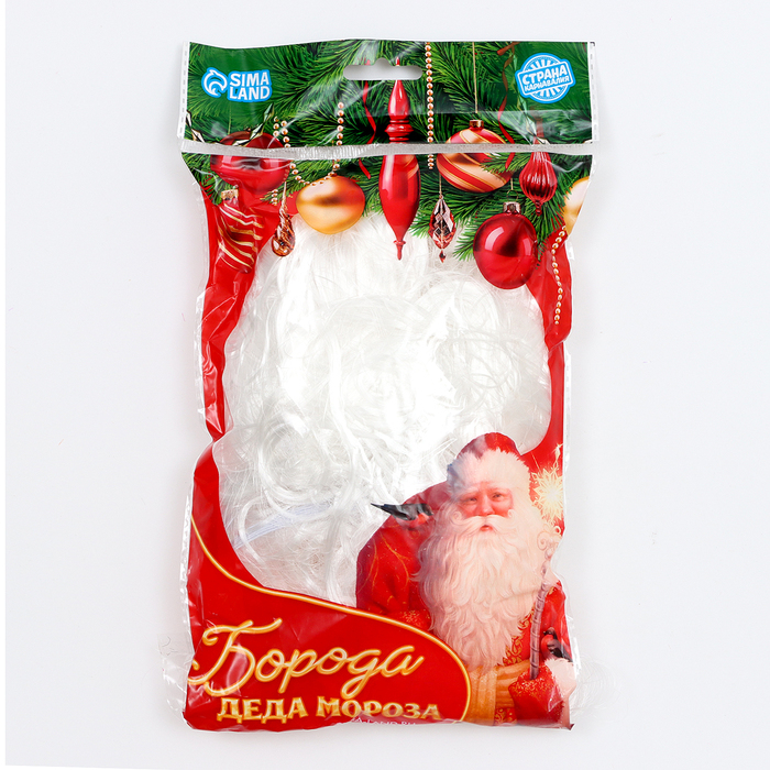 - Борода выполнена из высококачественных материалов. Она густая, имеет длину 50 см и естественный белый цвет, что придает образу максимальную реалистичность