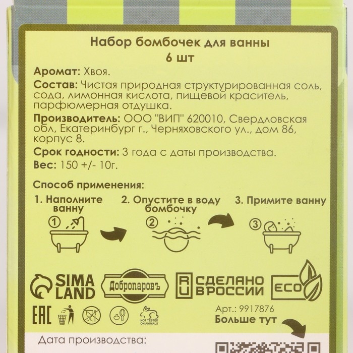 Набор бомбочек для ванны 6 шт "Хвойный лес" по 25 г