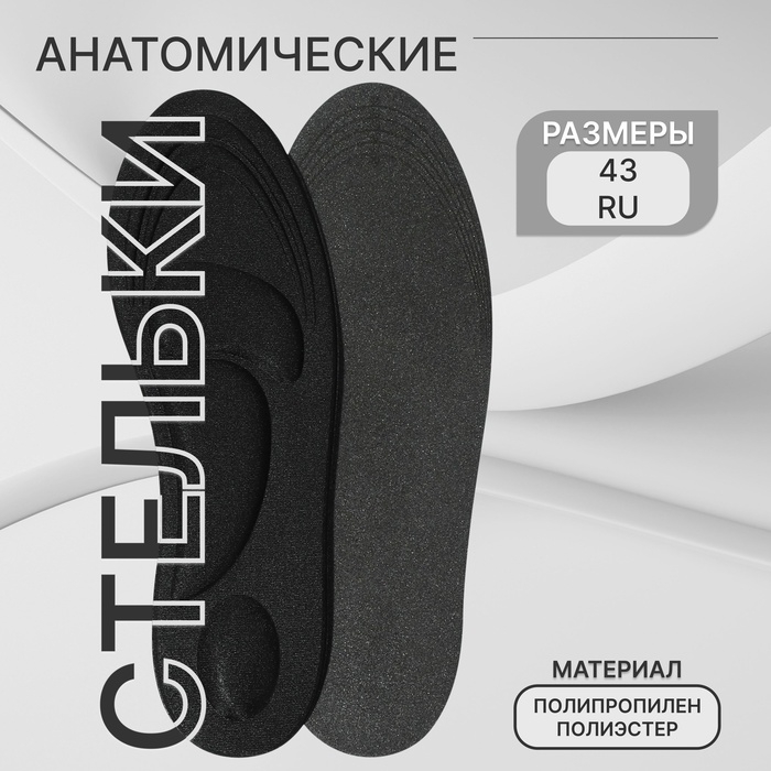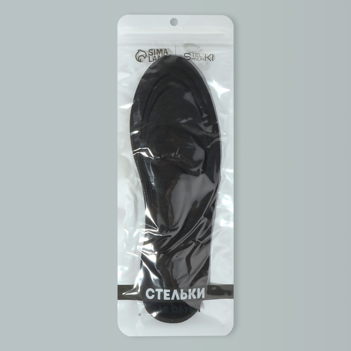 Стельки для обуви, универсальные, амортизирующие, р-р RU до 43 (р-р Пр-ля до 46), 27,5 см, пара, цвет чёрный
