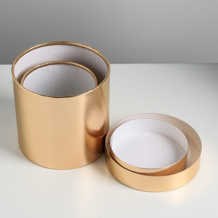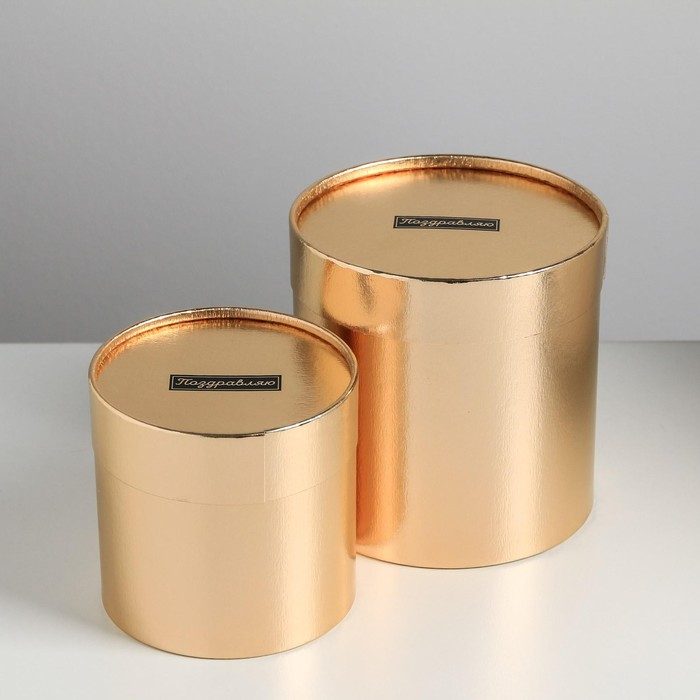 Набор золотых шляпных коробок 2 в 1, упаковка подарочная, «Поздравляю», 12 х 12, 15 х 15 см