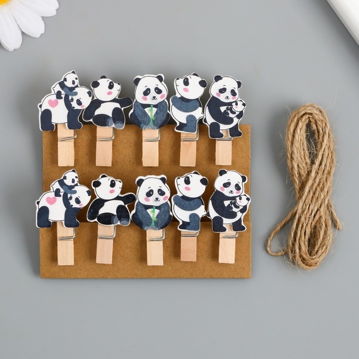 Декор для творчества дерево "Прищепка. Панды" набор 10 шт 4,2х2,3х1,2 см