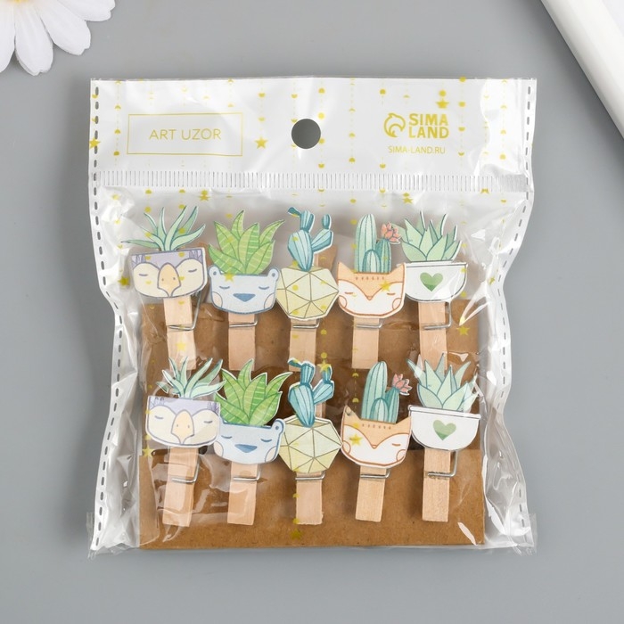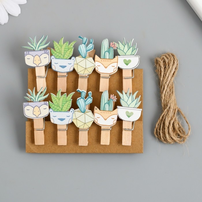 Декор для творчества дерево "Прищепка. Растения в горшочках" набор 10 шт 4х2х1,2 см