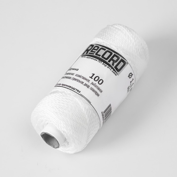 Нить кручёная 3-х прядная полипропиленовая, d=1.1 мм 100 м (белая)