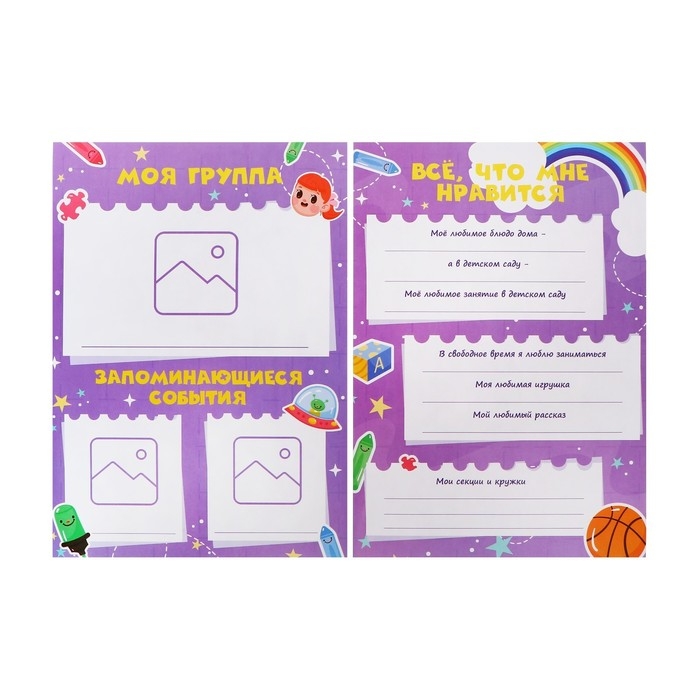 Листы-вкладыши для портфолио дошкольника, 9 разделов, 10 листов Calligrata, в папке