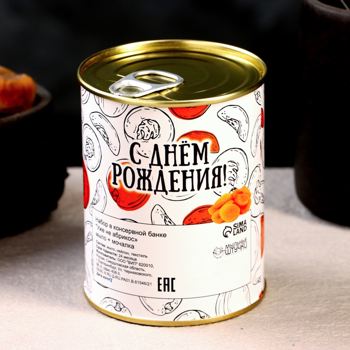 Набор в консервной банке "Уже не абрикос" мыло + мочалка