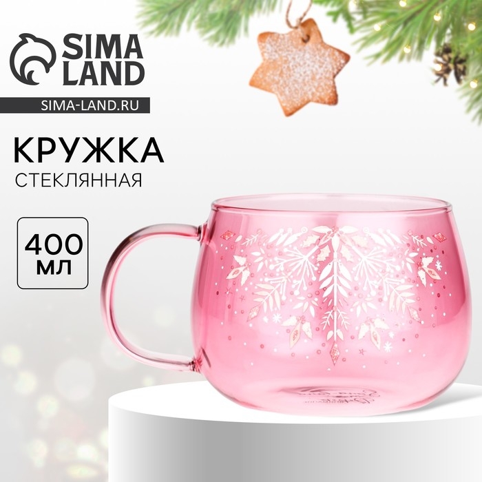 Новый год. Кружка новогодняя стеклянная «Розовая сказка», 400 мл
